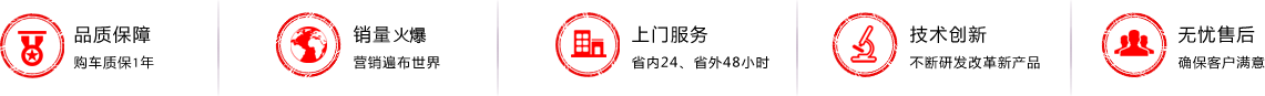 ① 質(zhì)保期內(nèi)(自購車之日起一年),向我公司申報故障情況后,售后服務(wù)部將在第一時間響應(yīng);質(zhì)保期內(nèi)以保修為主,修理費(fèi)全免(不包括易損件和電器部分)。